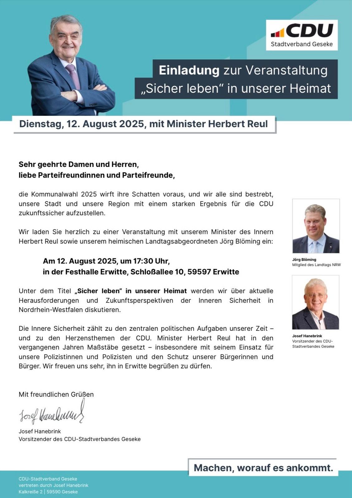 „Einen ganz herzlichen Dank an die Geseker CDU“ damit begrüßte Willi Pieper, Leiter der Geseker und Lippstädter Tafel die Überbringer des symbolischen Schecks in Höhe von 500,00 Euro.